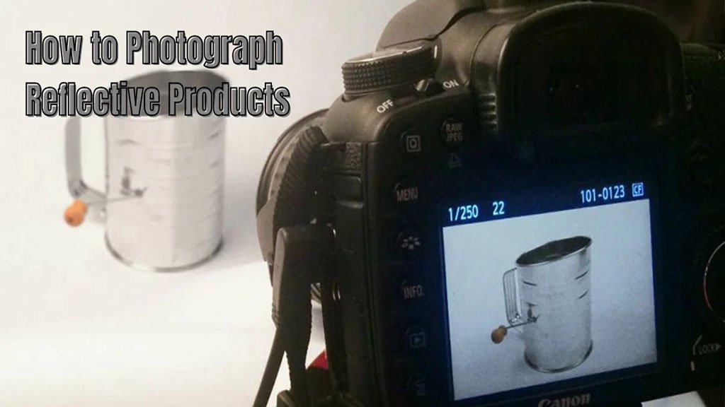 Analyze the reflective surfaces of the product and surrounding elements. Experiment with different lighting angles to minimize unwanted reflections. Attach a polarizing filter to your lens to reduce glare and reflections. Place black cards or flags strategically to block reflections and control light direction.