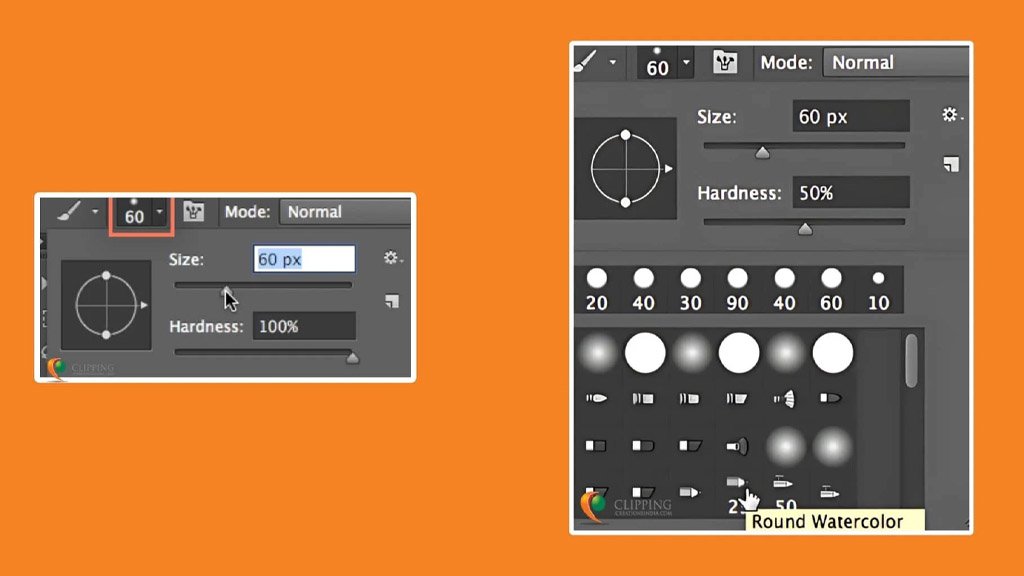 - Hardness: When you need to control the hardness or softness of your stroke, e.g. or whether it will be deep or light, you have to adjust the hardness of your brush edges from the same drop-down menu. A harder brush creates sharp edges, while a softer brush gives a blurred effect. For most designs, a hardness setting of 50% or less is ideal to keep brush strokes subtle.